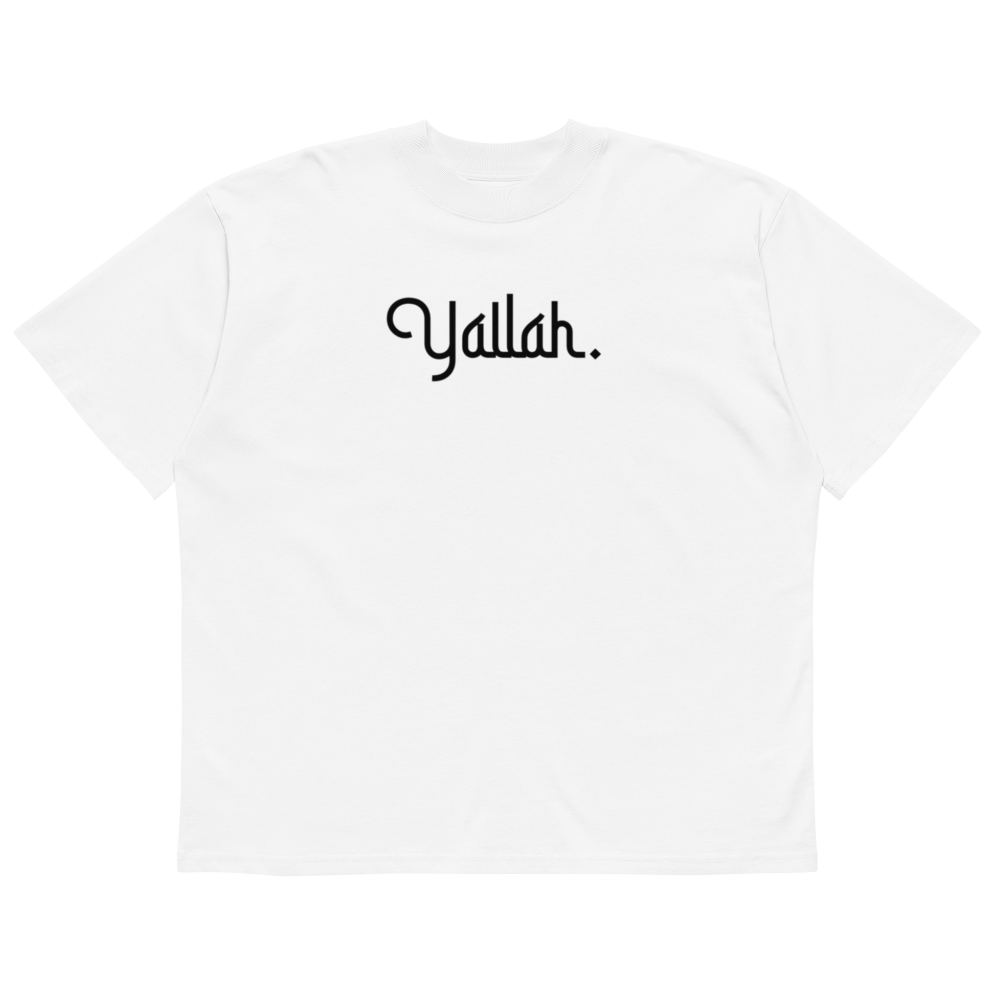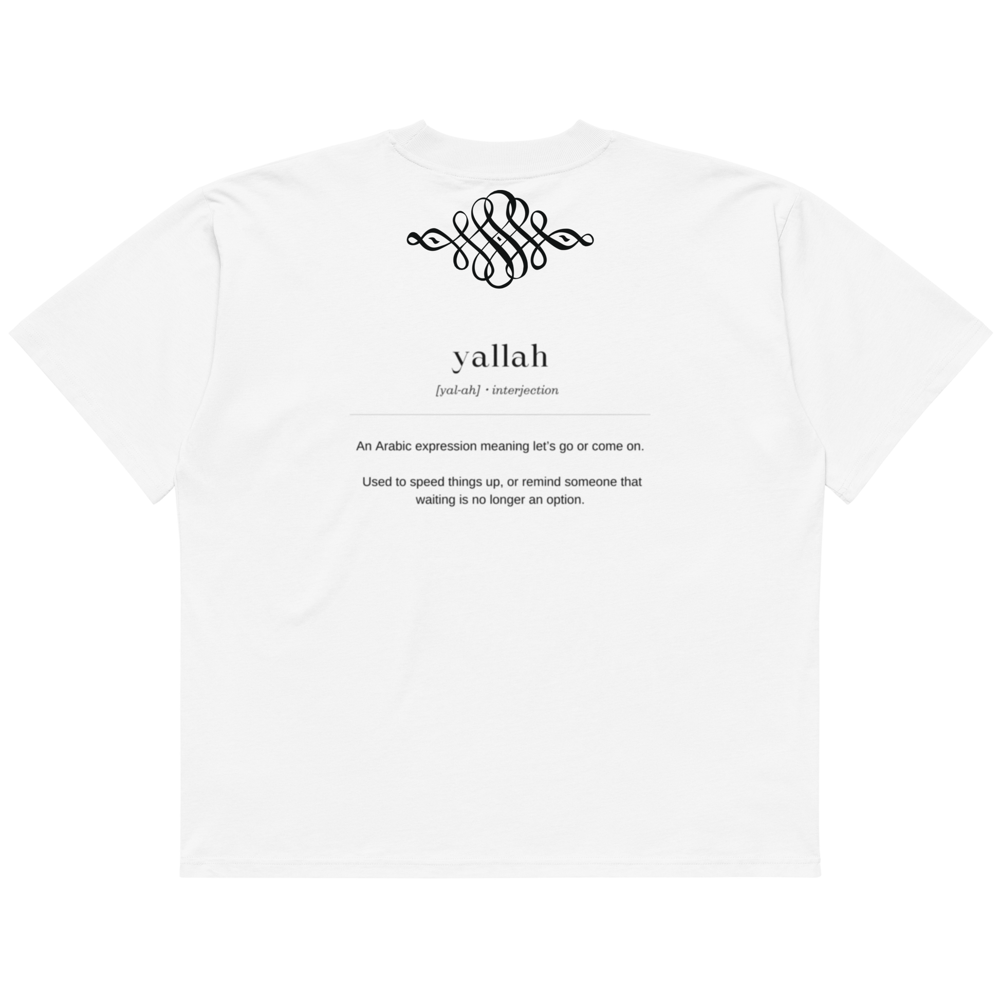 The Yallah Signature Oversized Tee features a dictionary style definition printed across the back, turning a familiar word into a statement.